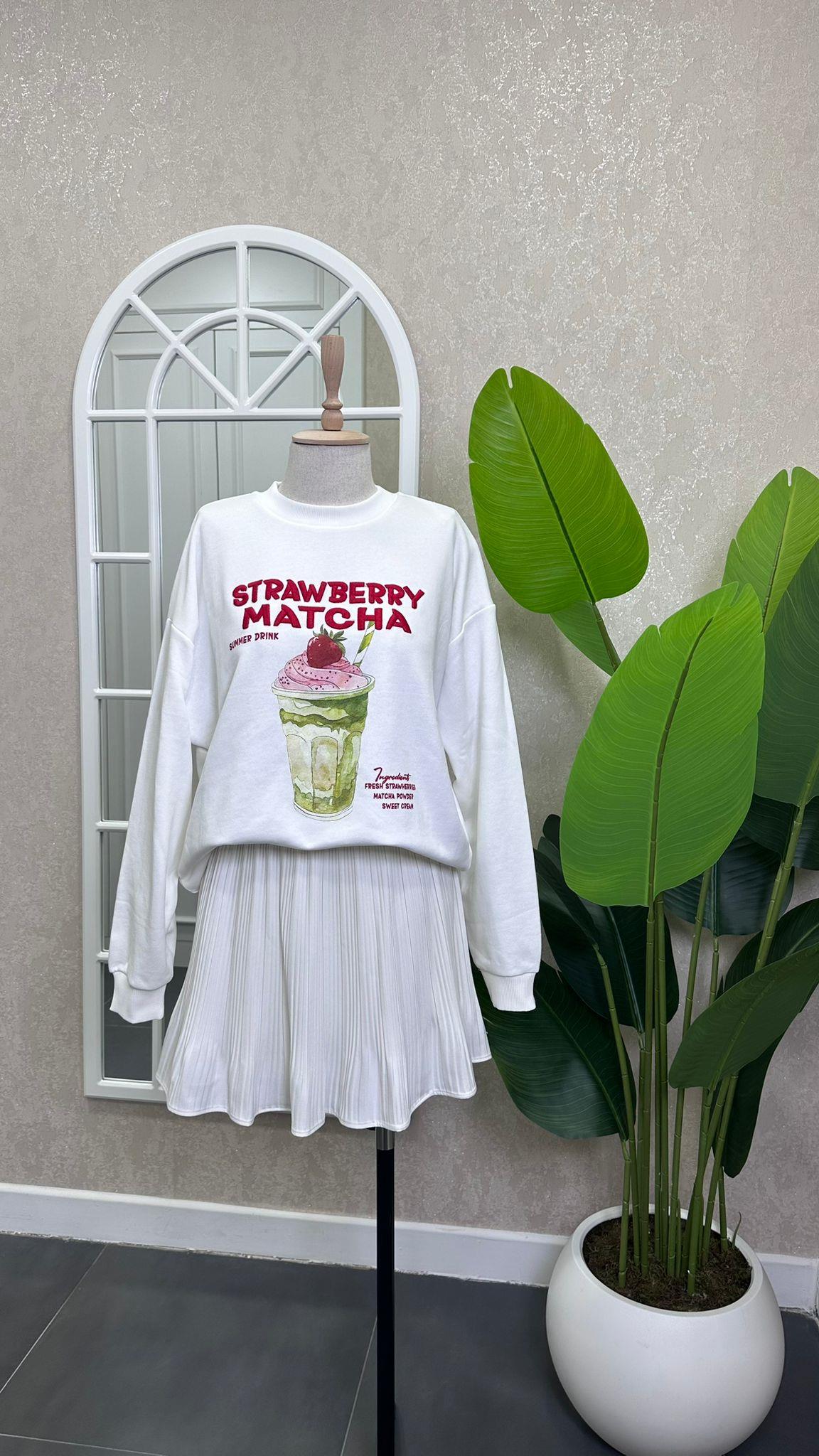 MATCHA BASKILI SWEATSHIRT BEYAZ