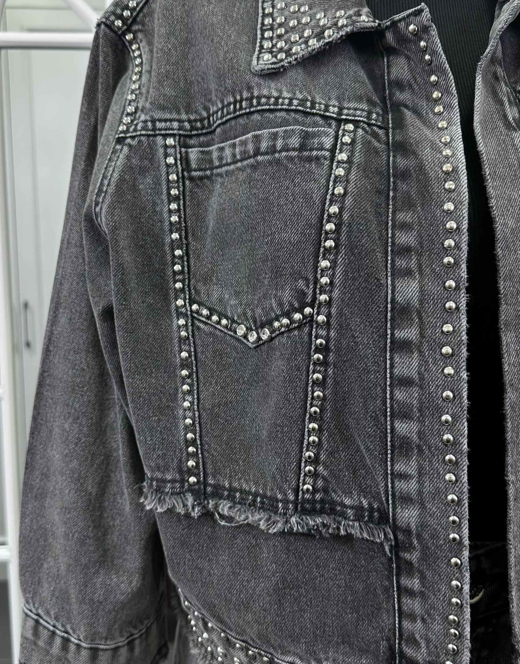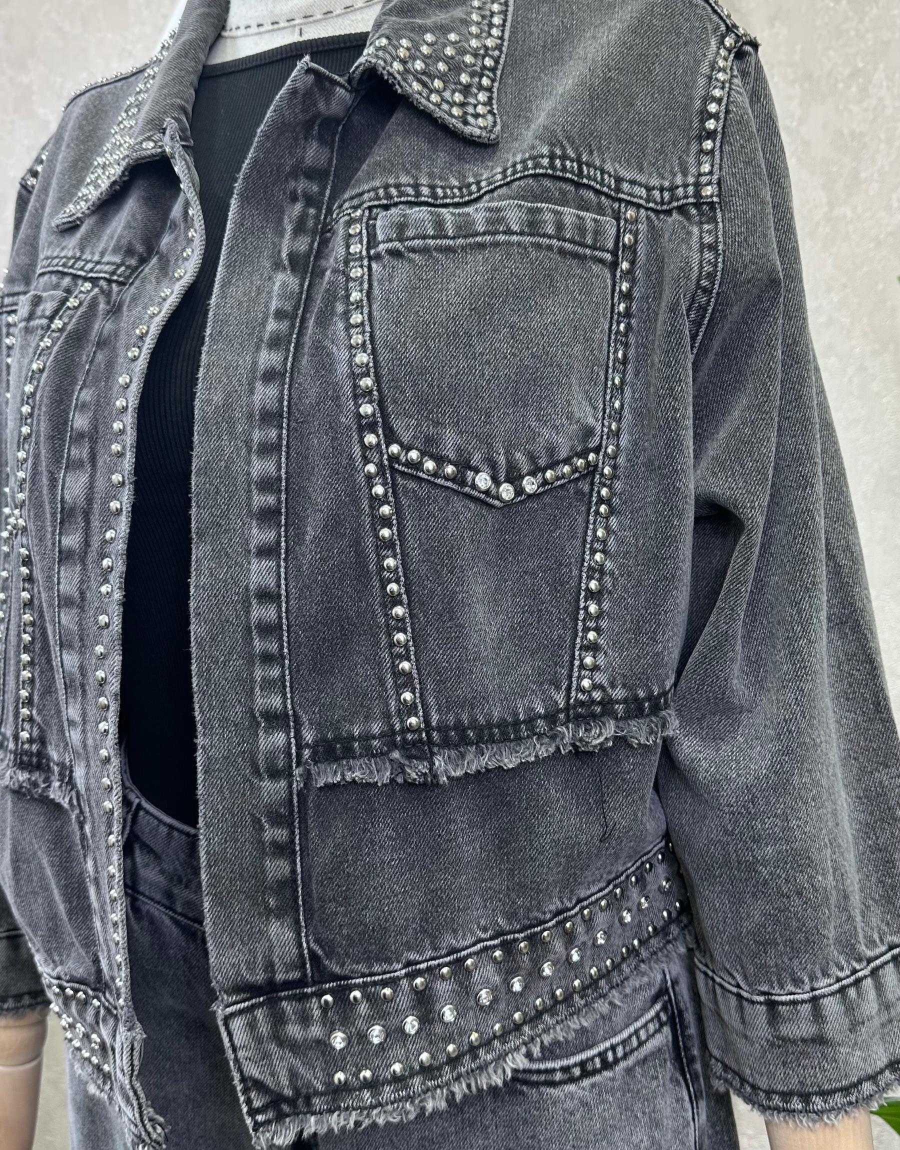 İTHAL ZIMBA DETAYLI DENİM CEKET GRİ