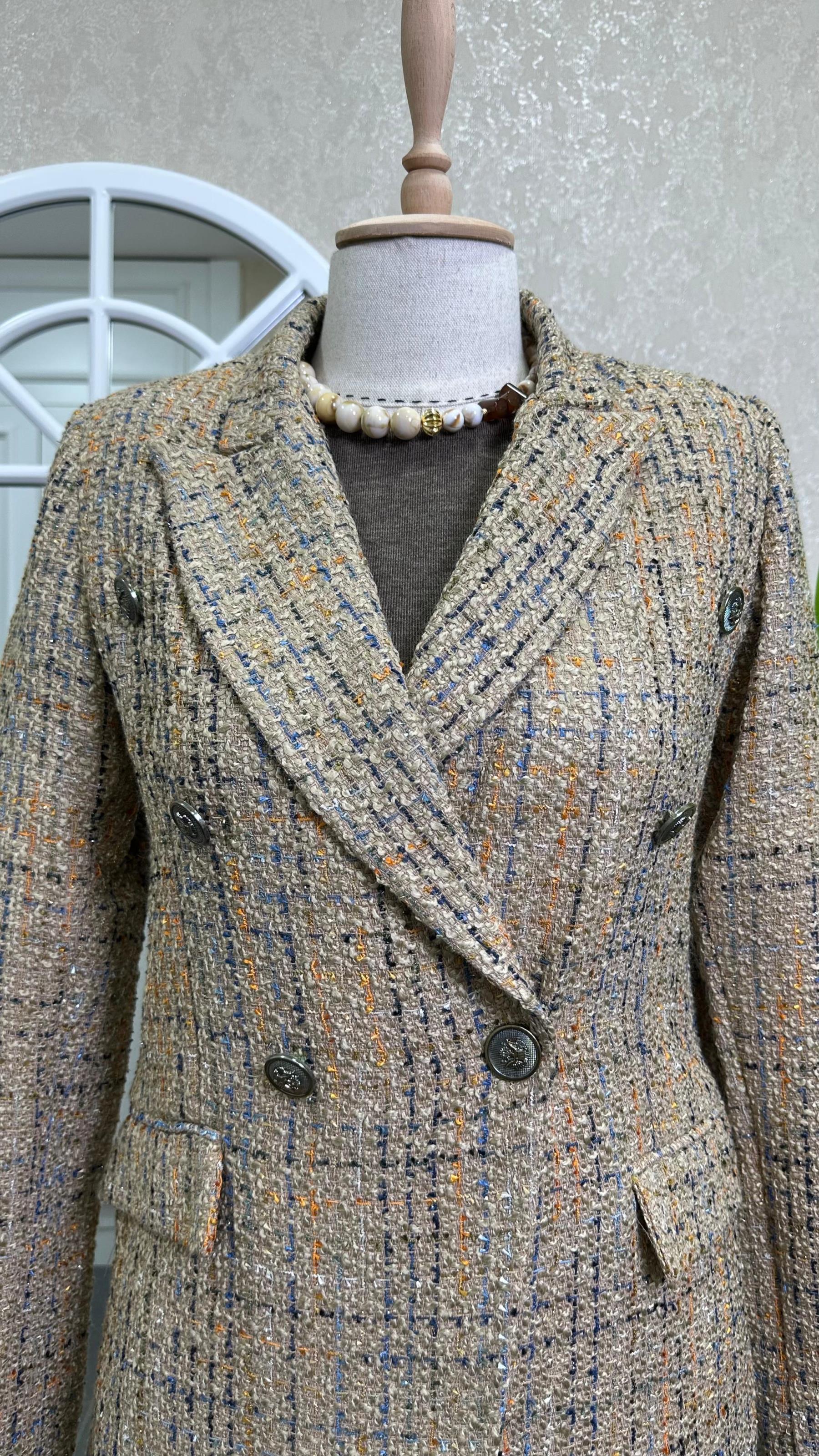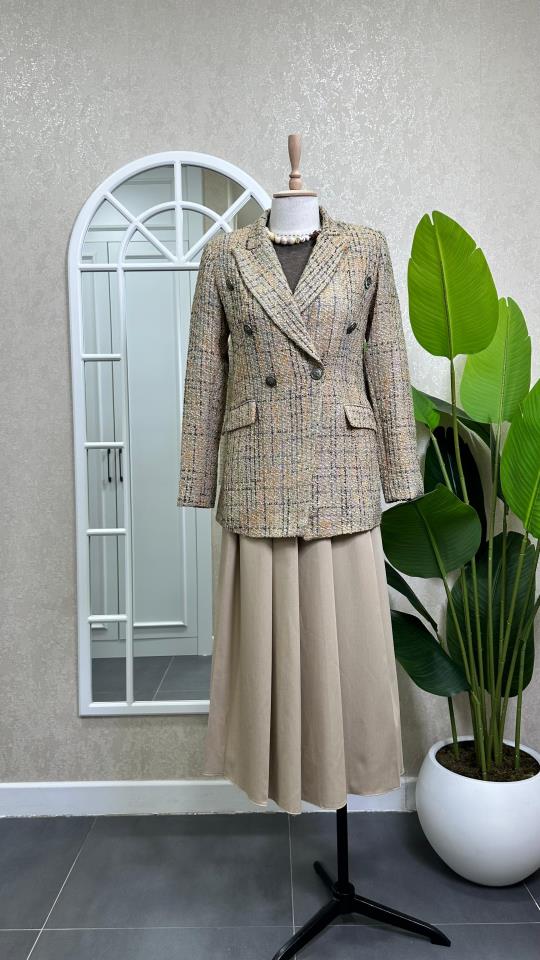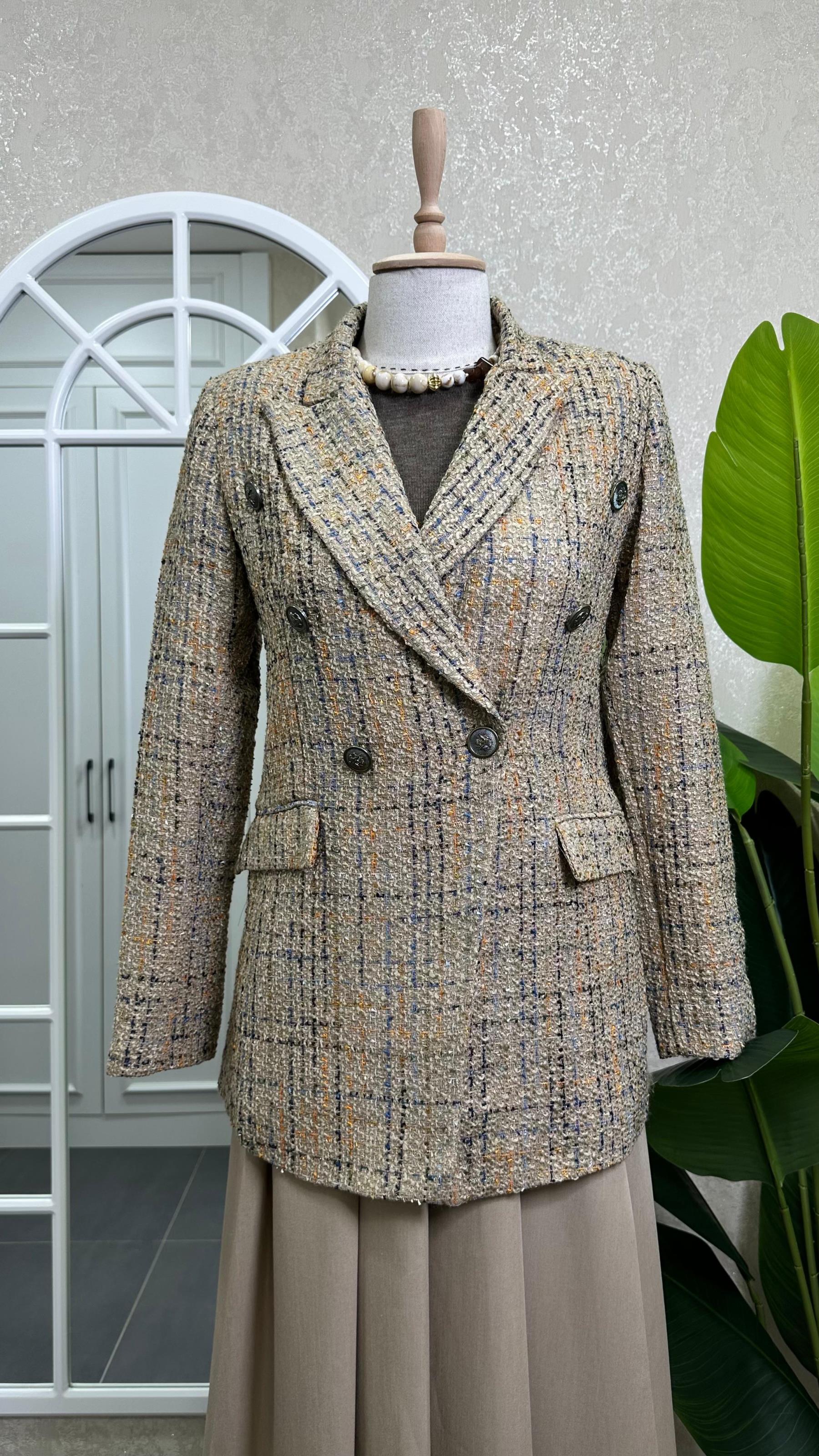KRUVAZE YAKA DÜĞMELİ CHANNEL CEKET KAHVE