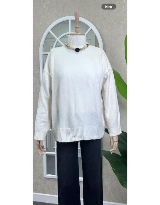 OVAL YAKA İNCE TRİKO KAZAK PEMBE