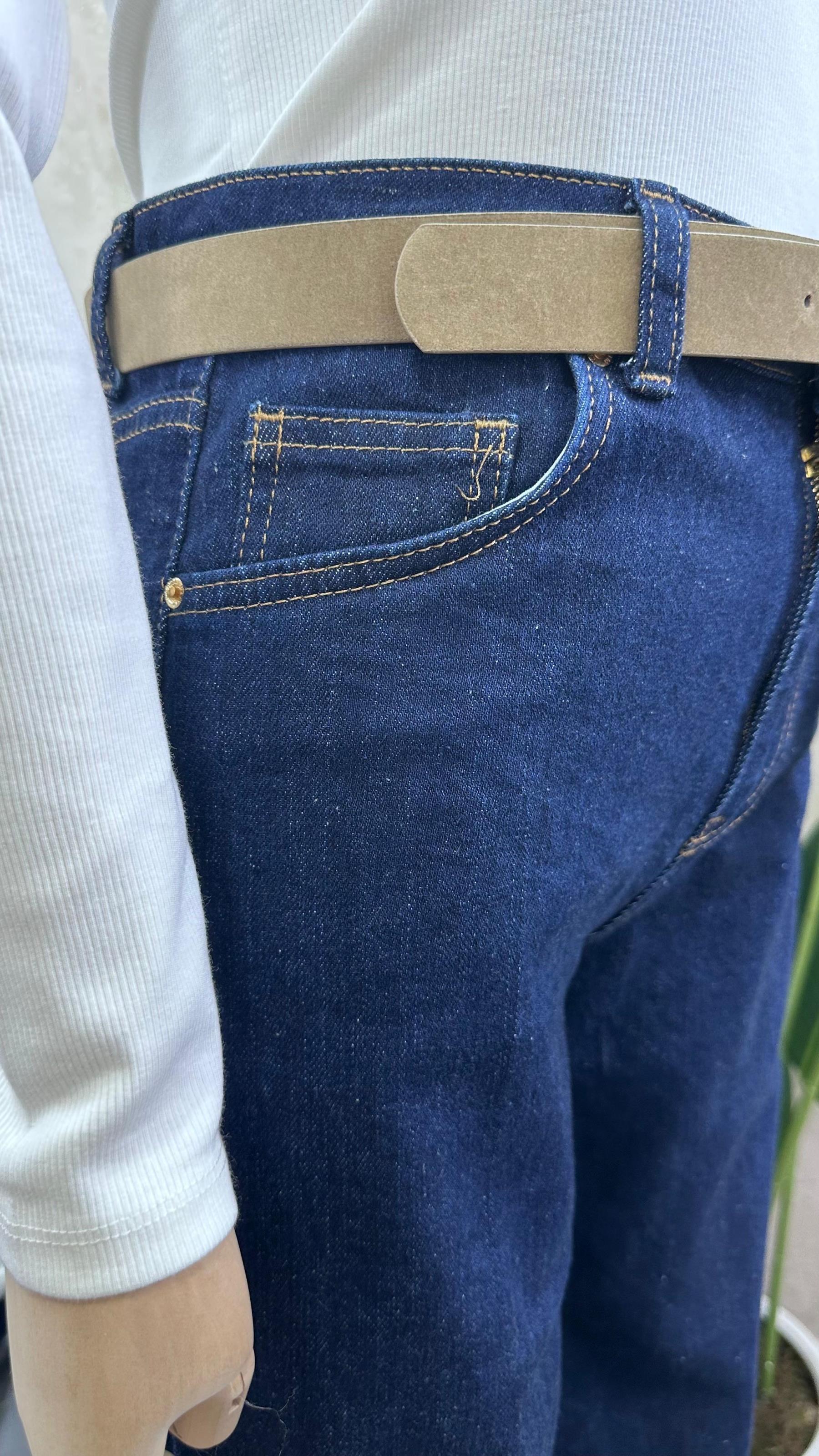 KEMERLİ BLUE MOM JEAN MAVİ
