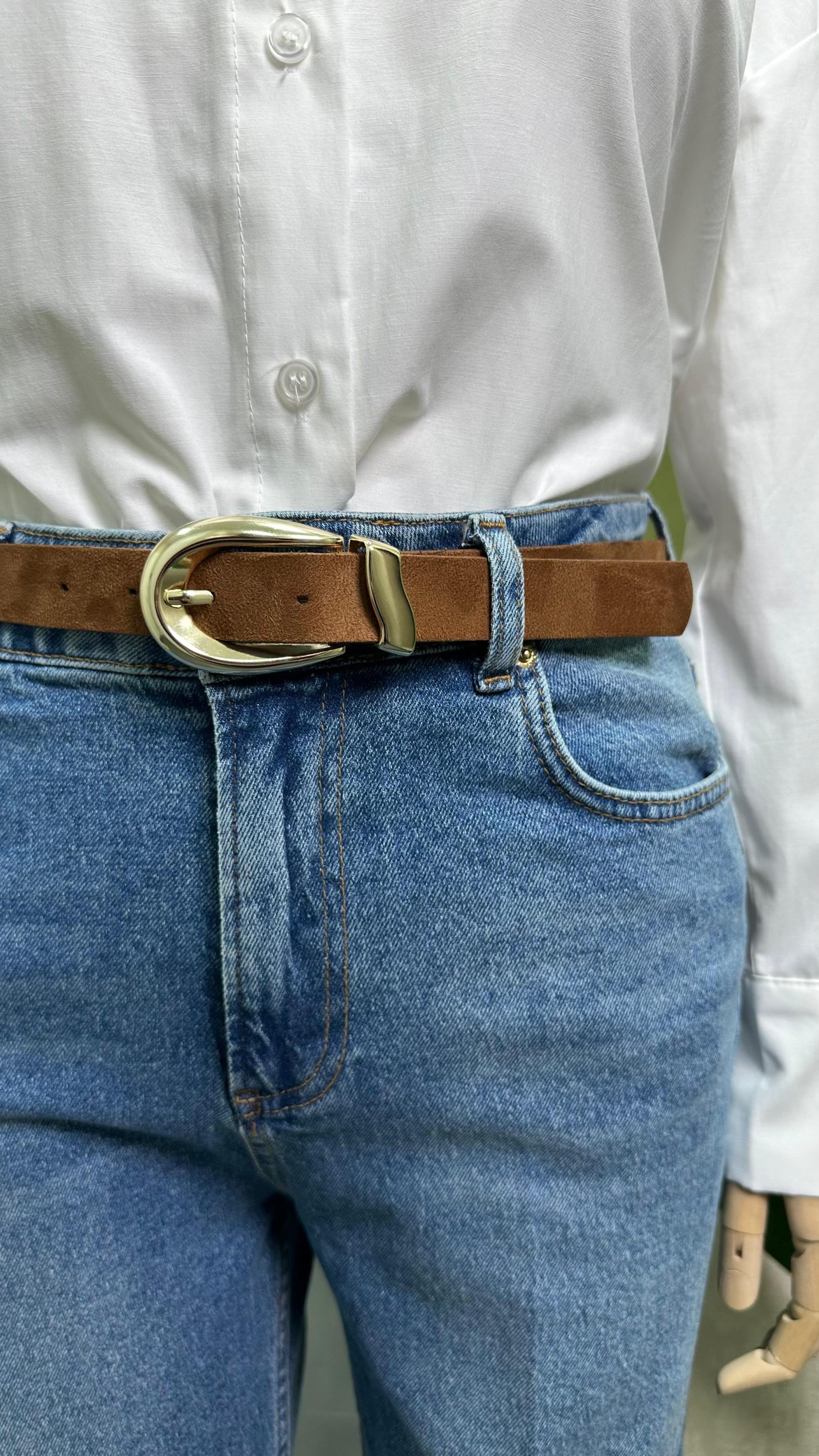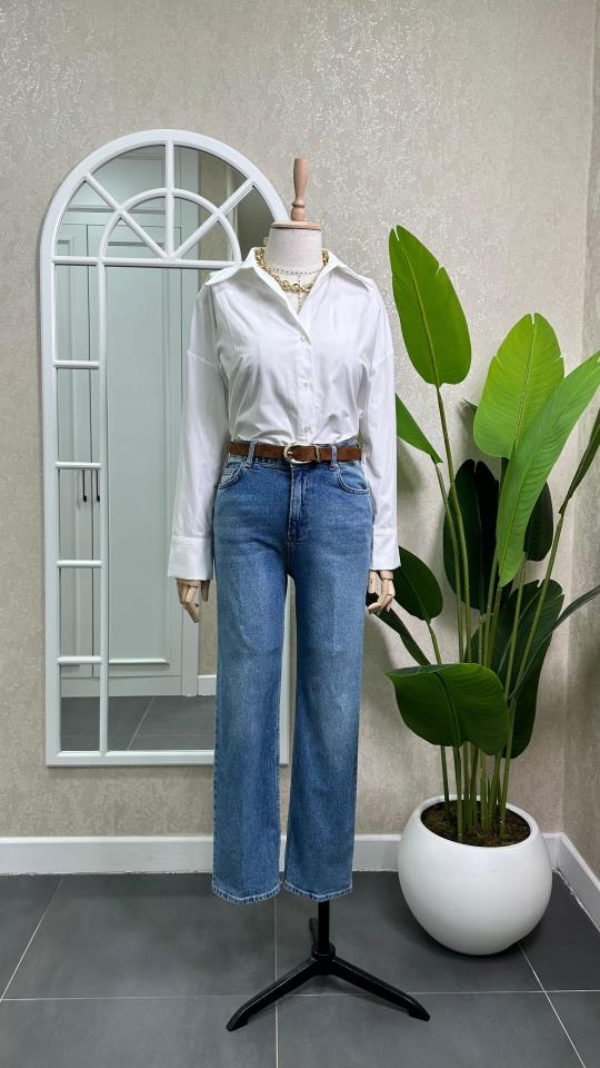 KEMERLİ BLUE MOM JEAN MAVİ