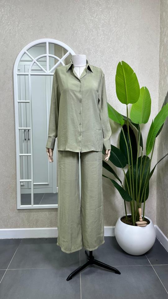 SATEN GÖMLEK PANTOLON TAKIM YEŞİL