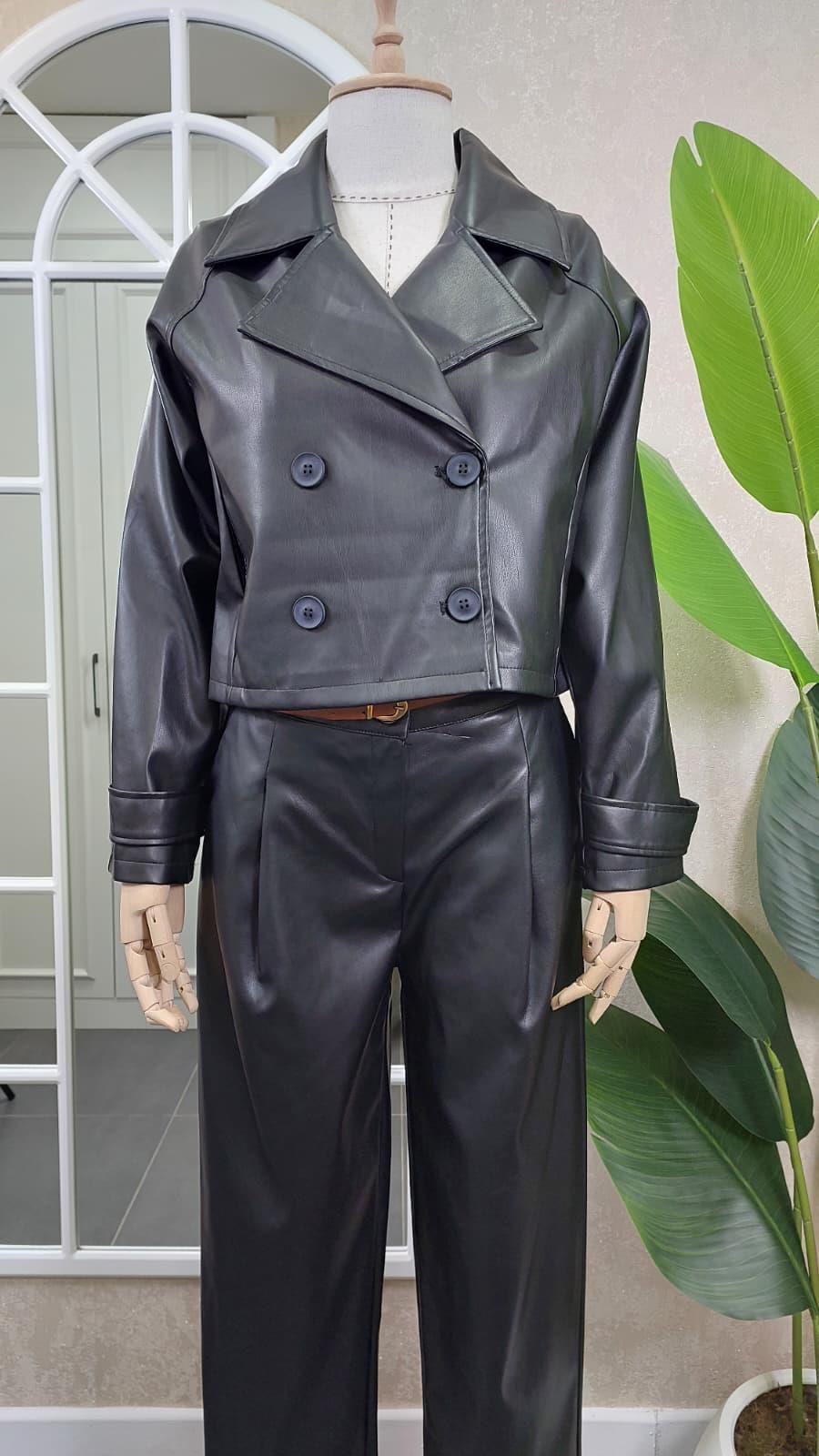 KRUVAZE YAKA DÜĞMELİ CHANNEL CEKET KAHVE