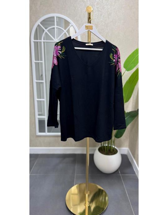 OMUZU TAŞLI BLUZ SİYAH